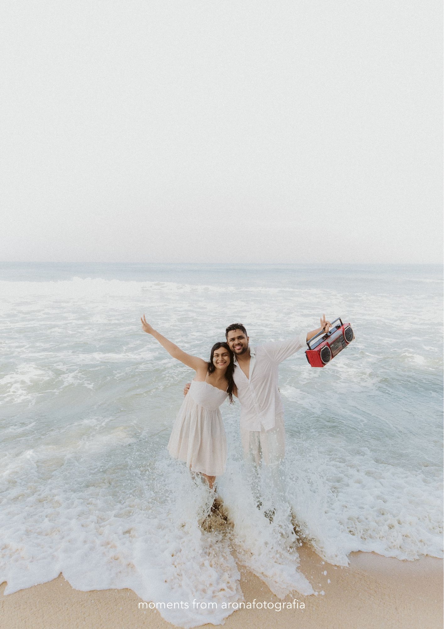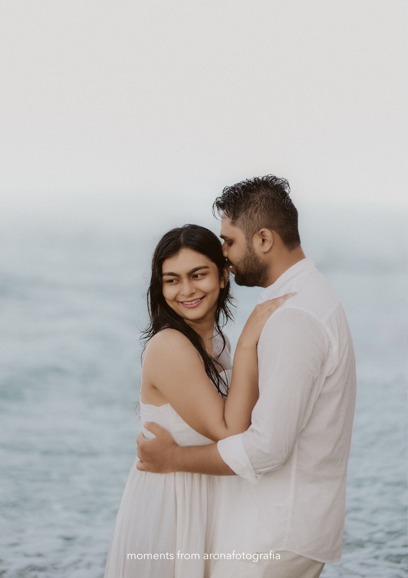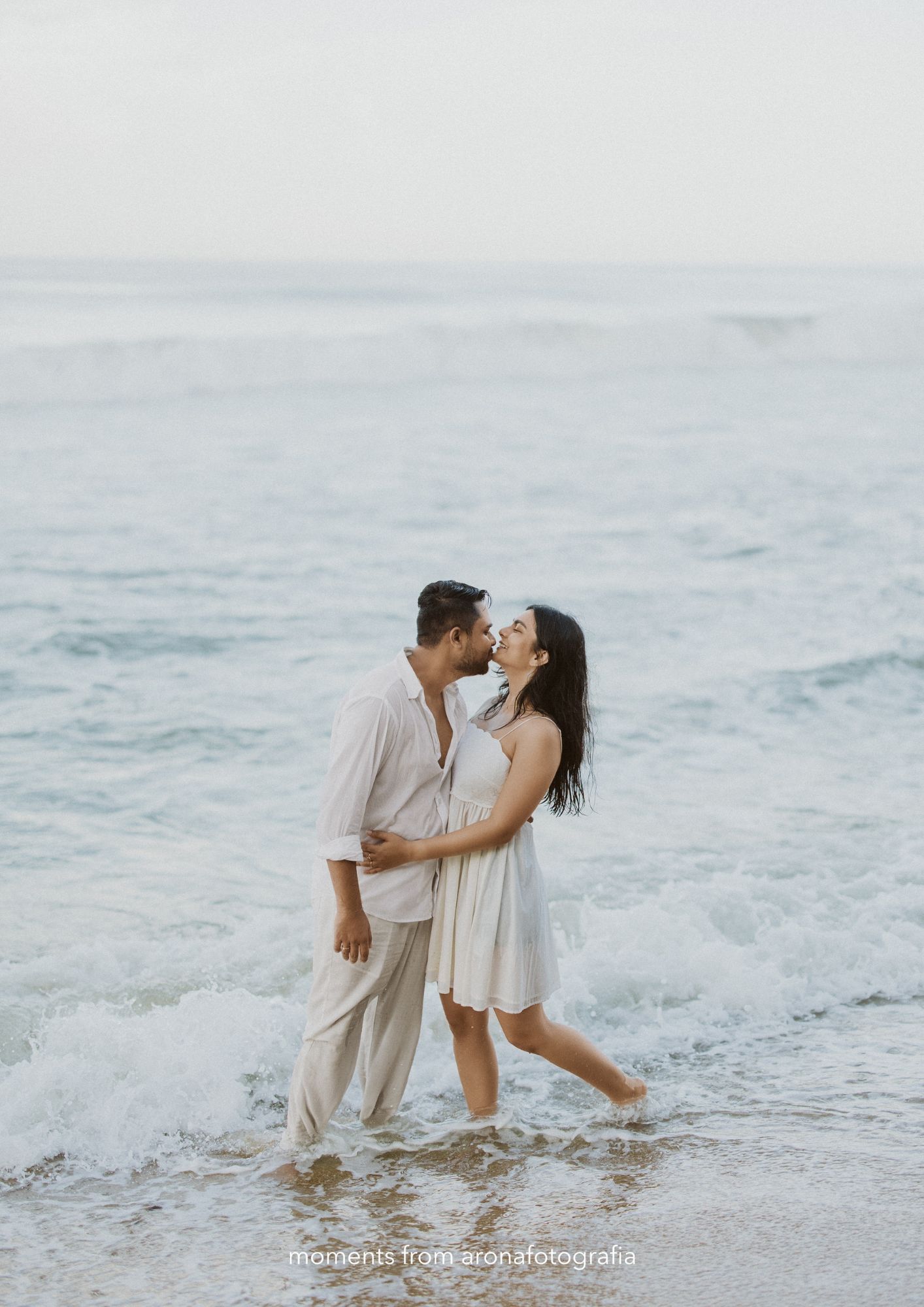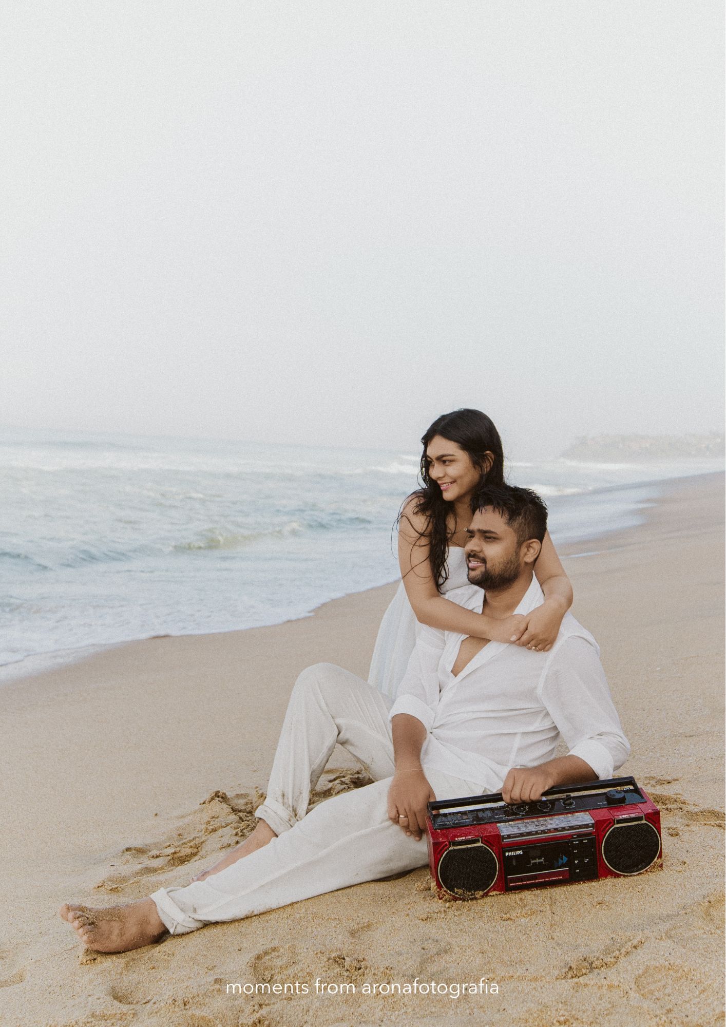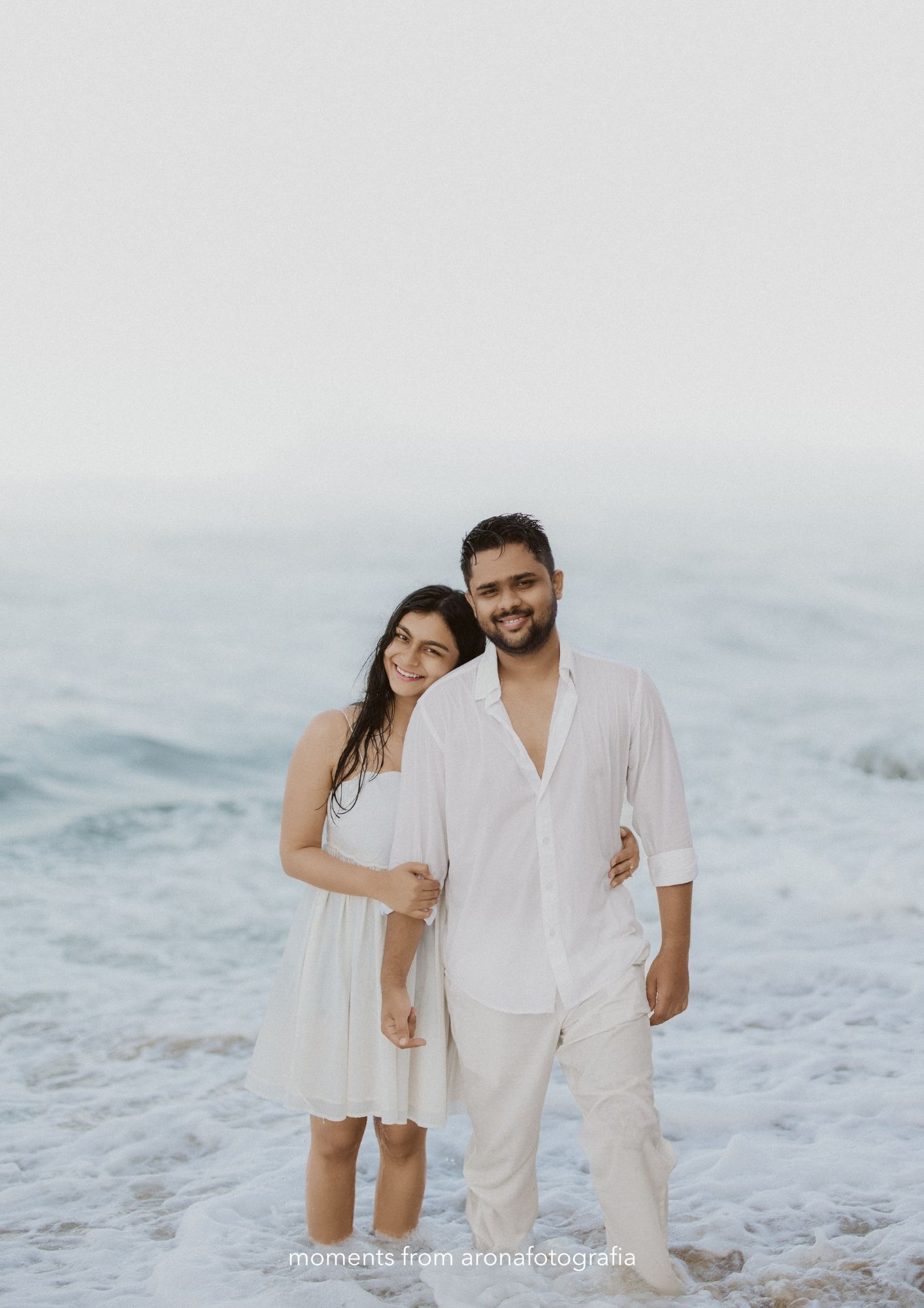 Saharsh and Rishika’s pre-wedding shoot beautifully captured the charm of love, laughter, and togetherness at the stunning Varkala Beach in Kerala. Shot during the early morning hours, the soft golden light and calm waves created a dreamy, romantic atmosphere. Dressed in breezy outfits that matched the beach vibe, the couple radiated pure joy and connection as they enjoyed every candid moment by the shore. The combination of natural light, ocean breeze, and their effortless chemistry made every frame come alive. This beach pre-wedding shoot in Kerala perfectly blends fun, freedom, and romance a beautiful visual story captured by Arona Fotografia, one of the best pre-wedding photographers in Kerala.