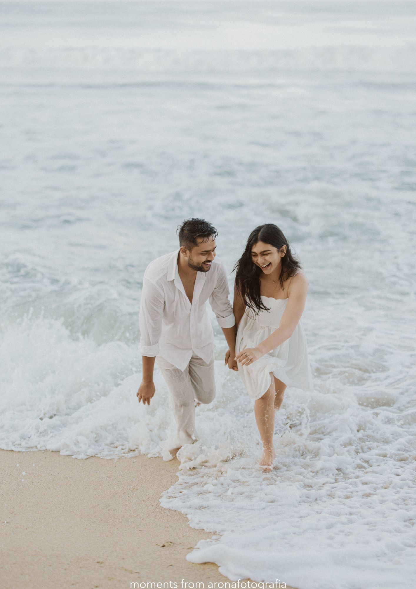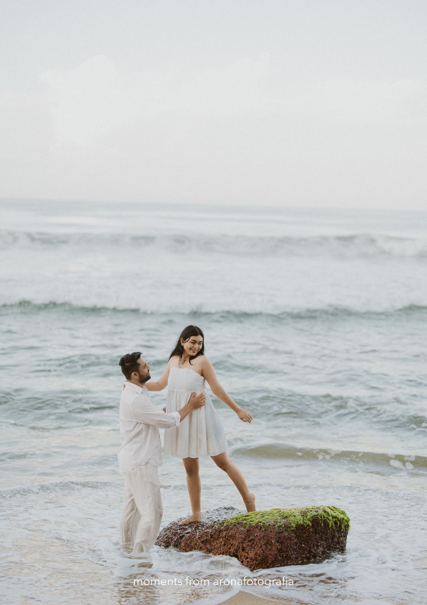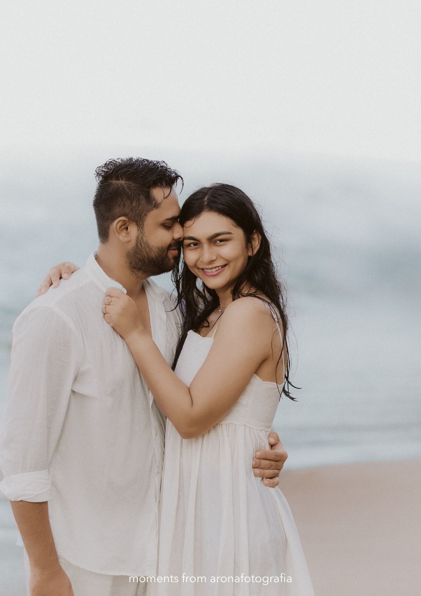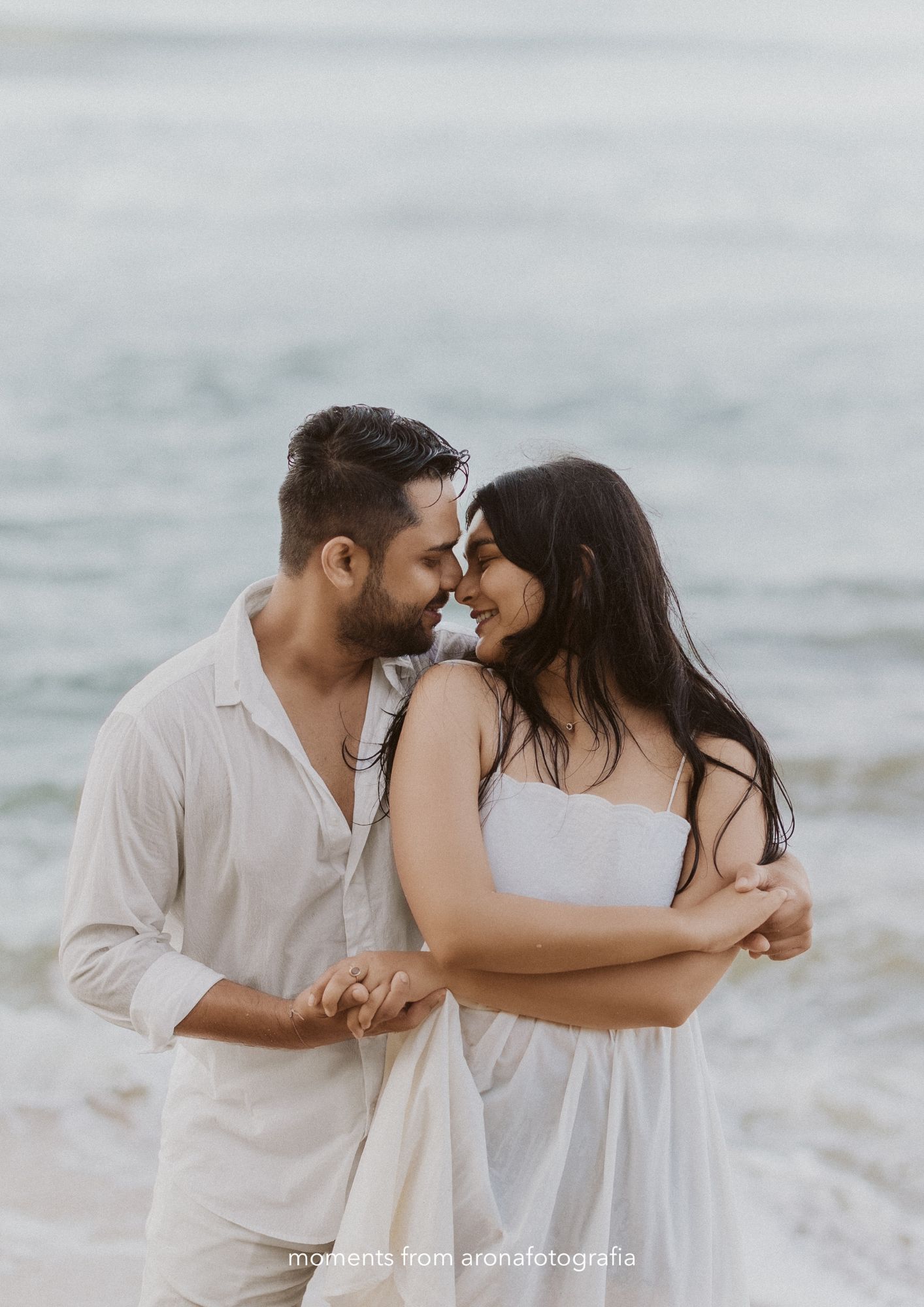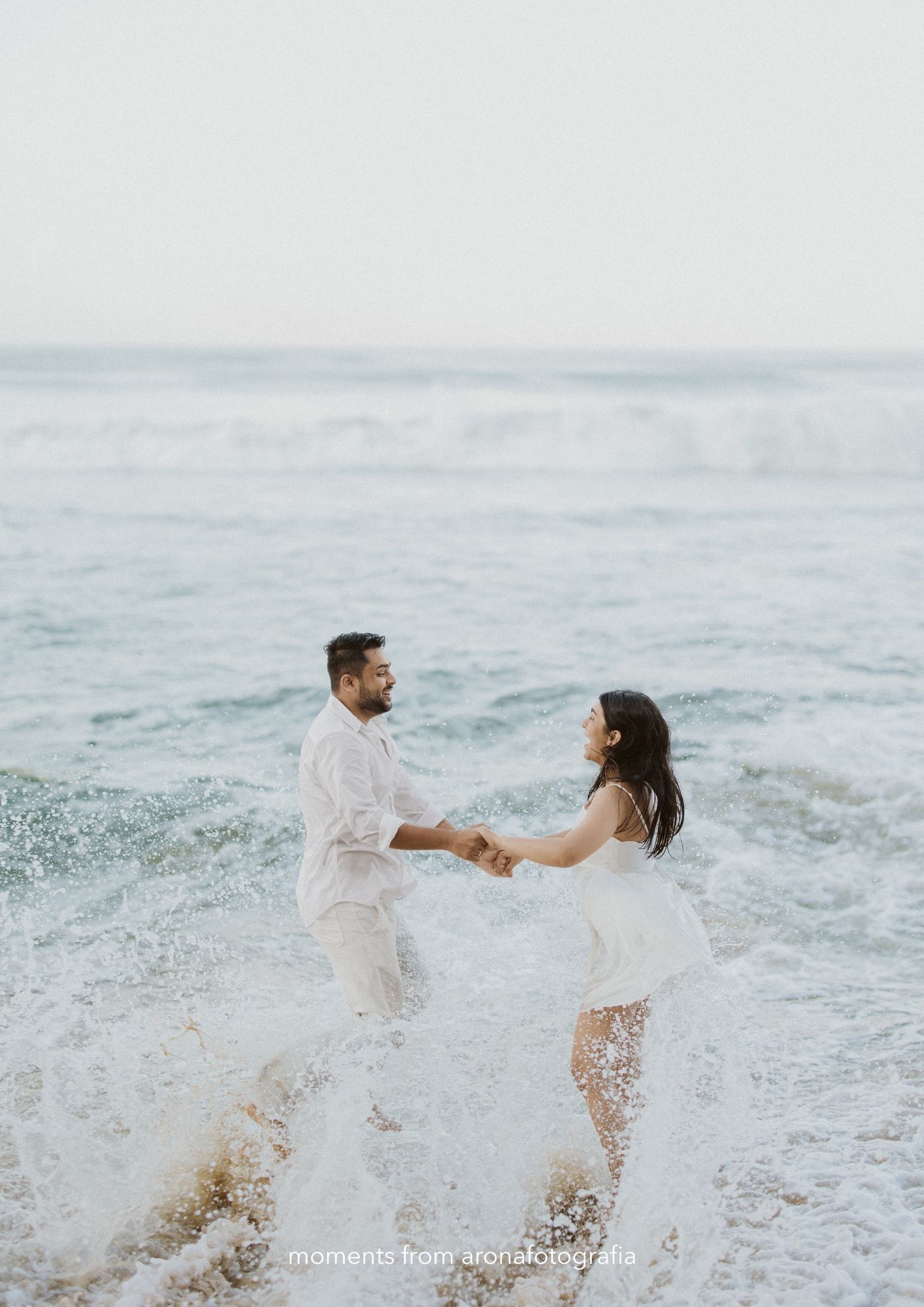 Saharsh and Rishika’s pre-wedding shoot beautifully captured the charm of love, laughter, and togetherness at the stunning Varkala Beach in Kerala. Shot during the early morning hours, the soft golden light and calm waves created a dreamy, romantic atmosphere. Dressed in breezy outfits that matched the beach vibe, the couple radiated pure joy and connection as they enjoyed every candid moment by the shore. The combination of natural light, ocean breeze, and their effortless chemistry made every frame come alive. This beach pre-wedding shoot in Kerala perfectly blends fun, freedom, and romance a beautiful visual story captured by Arona Fotografia, one of the best pre-wedding photographers in Kerala.