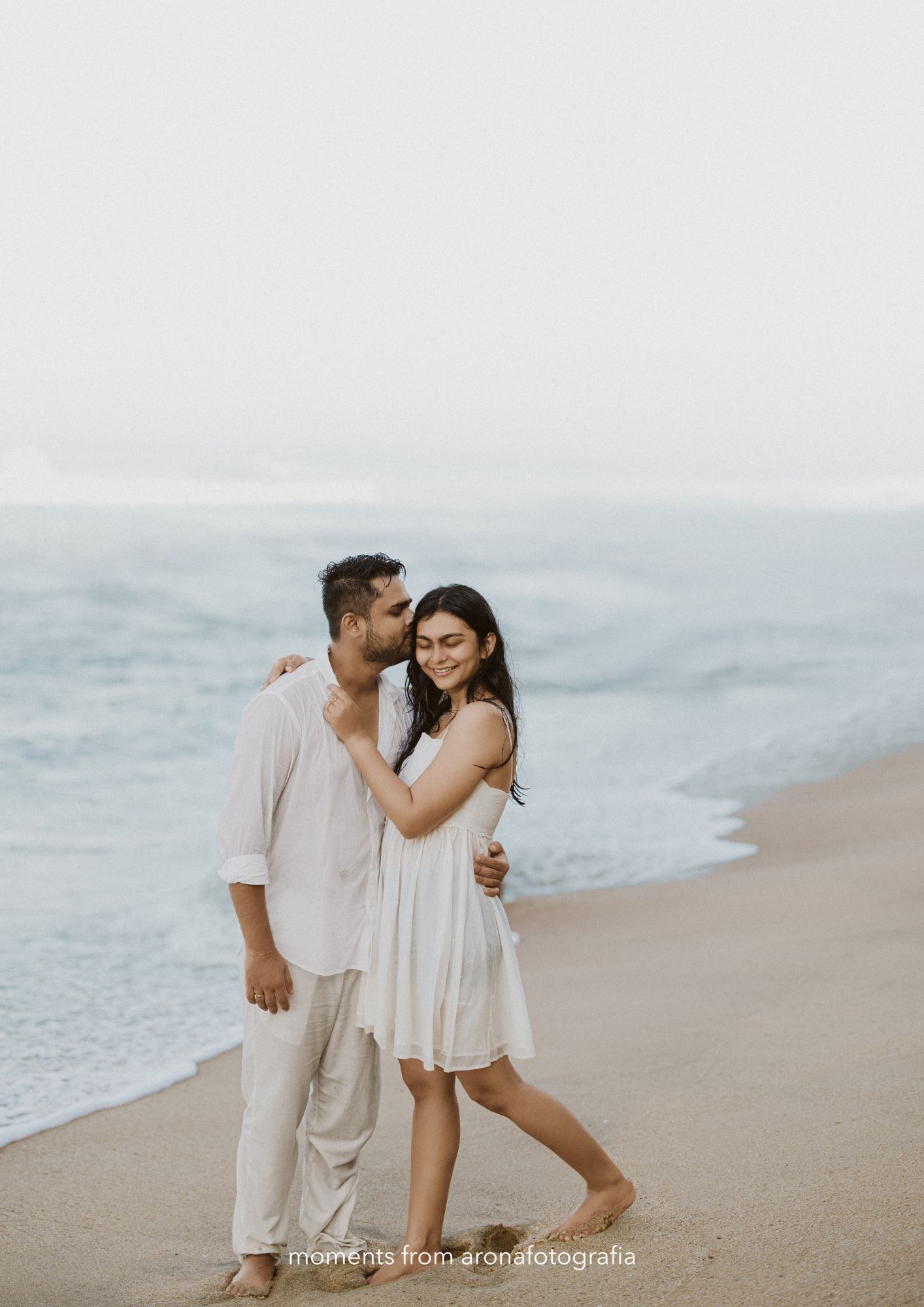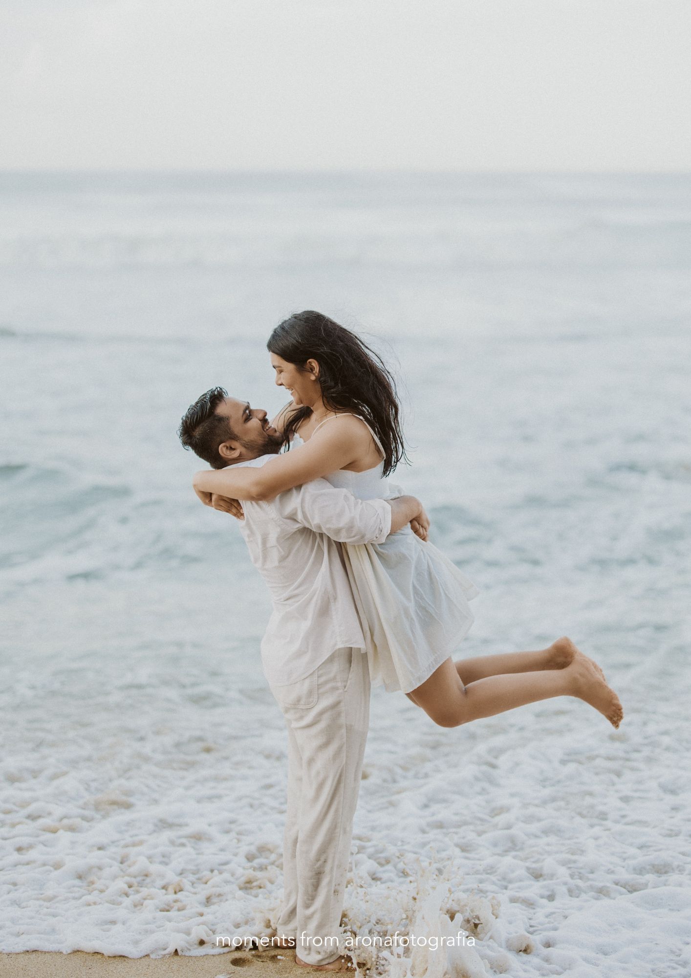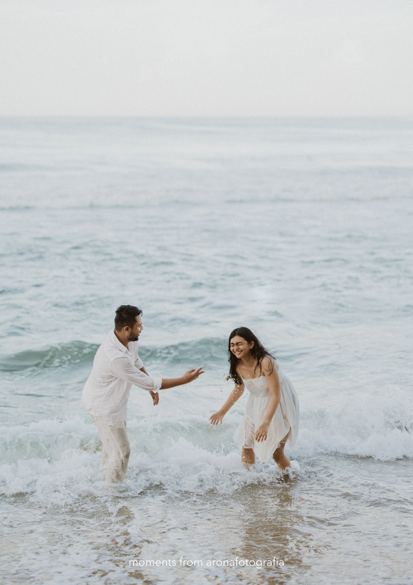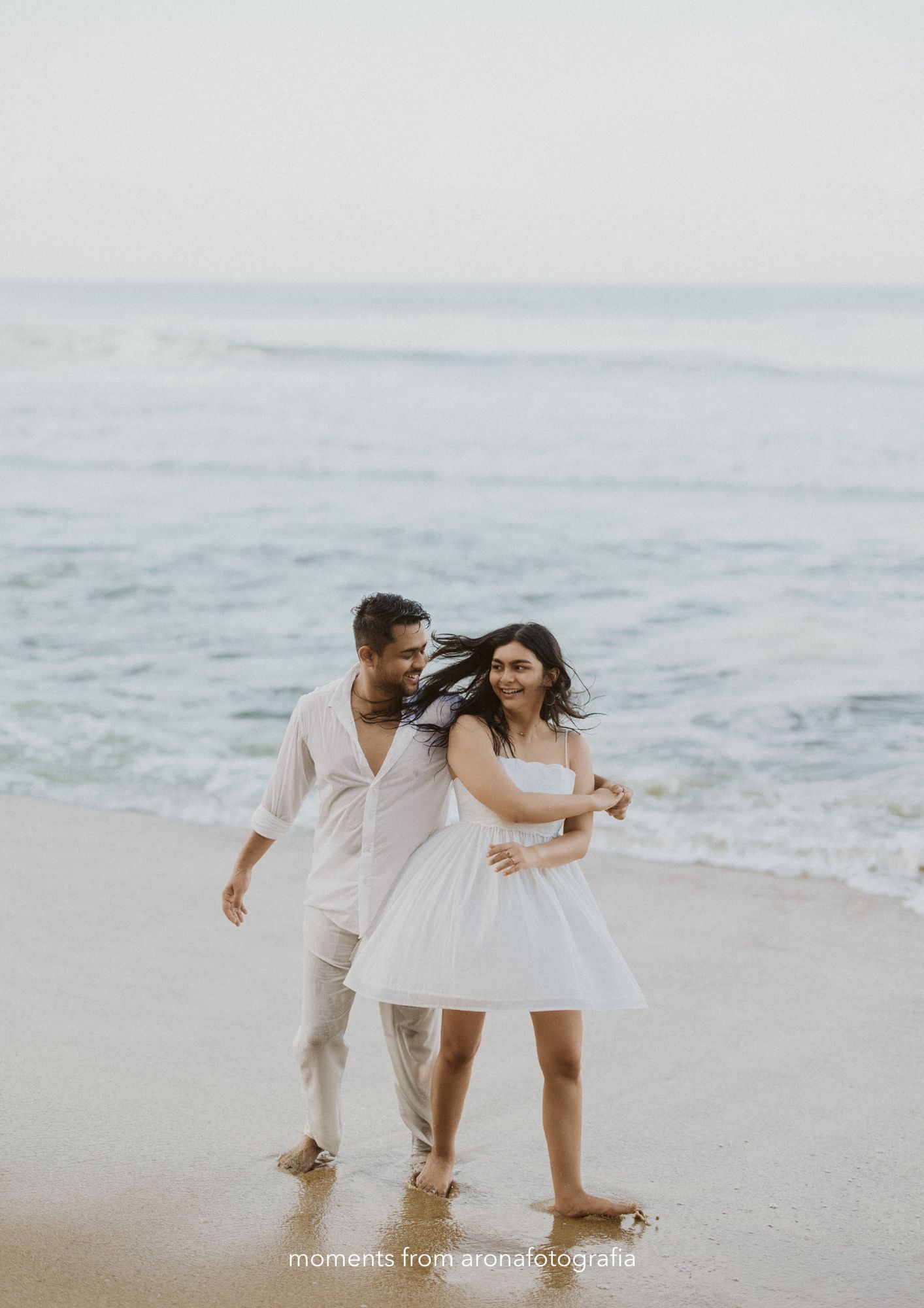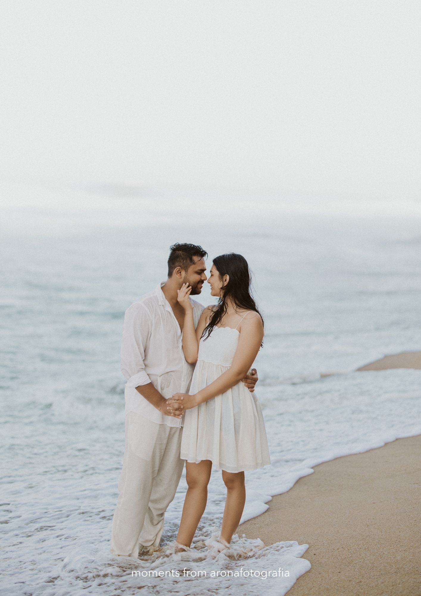 Saharsh and Rishika’s pre-wedding shoot beautifully captured the charm of love, laughter, and togetherness at the stunning Varkala Beach in Kerala. Shot during the early morning hours, the soft golden light and calm waves created a dreamy, romantic atmosphere. Dressed in breezy outfits that matched the beach vibe, the couple radiated pure joy and connection as they enjoyed every candid moment by the shore. The combination of natural light, ocean breeze, and their effortless chemistry made every frame come alive. This beach pre-wedding shoot in Kerala perfectly blends fun, freedom, and romance a beautiful visual story captured by Arona Fotografia, one of the best pre-wedding photographers in Kerala.