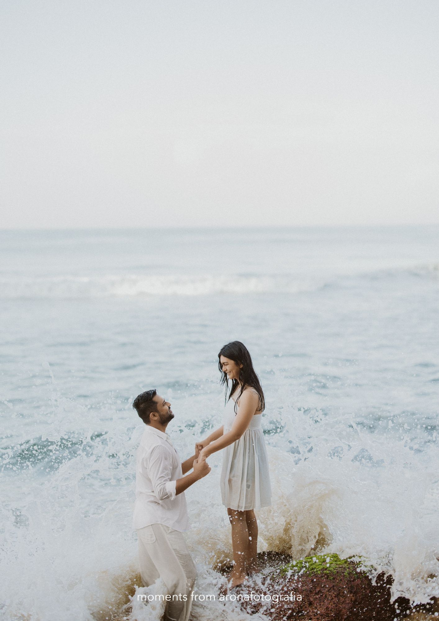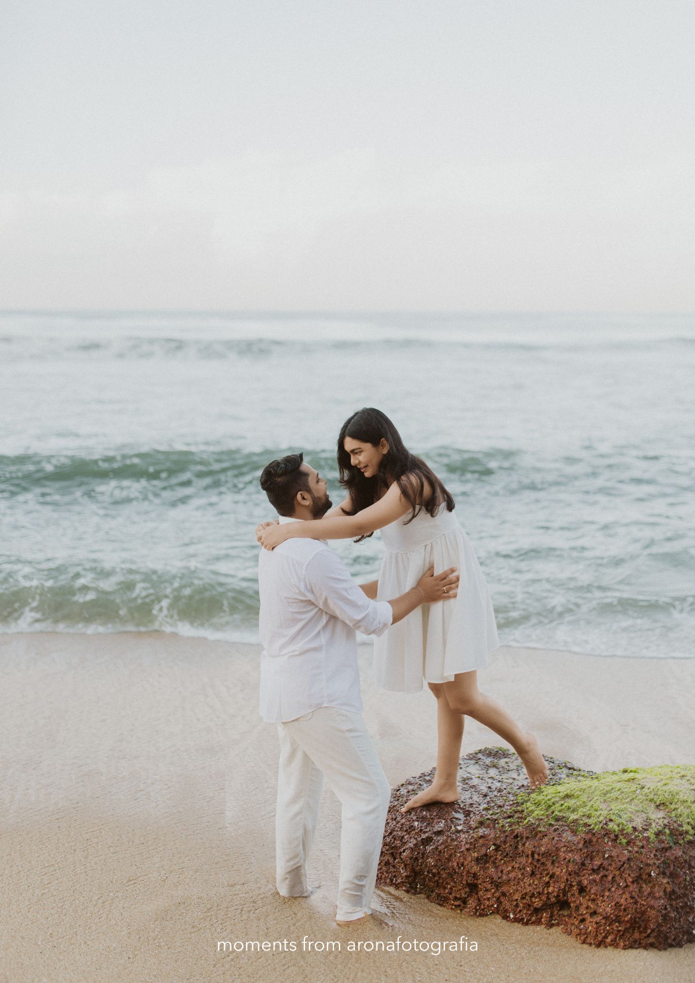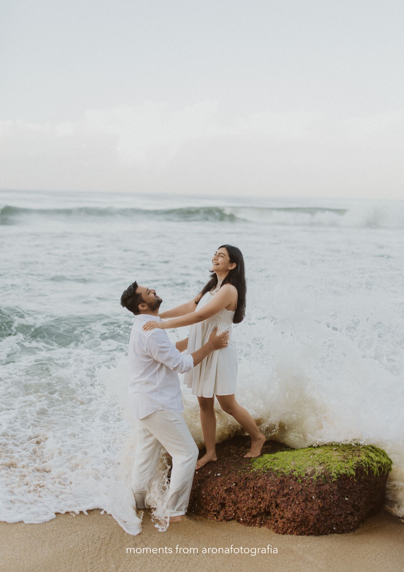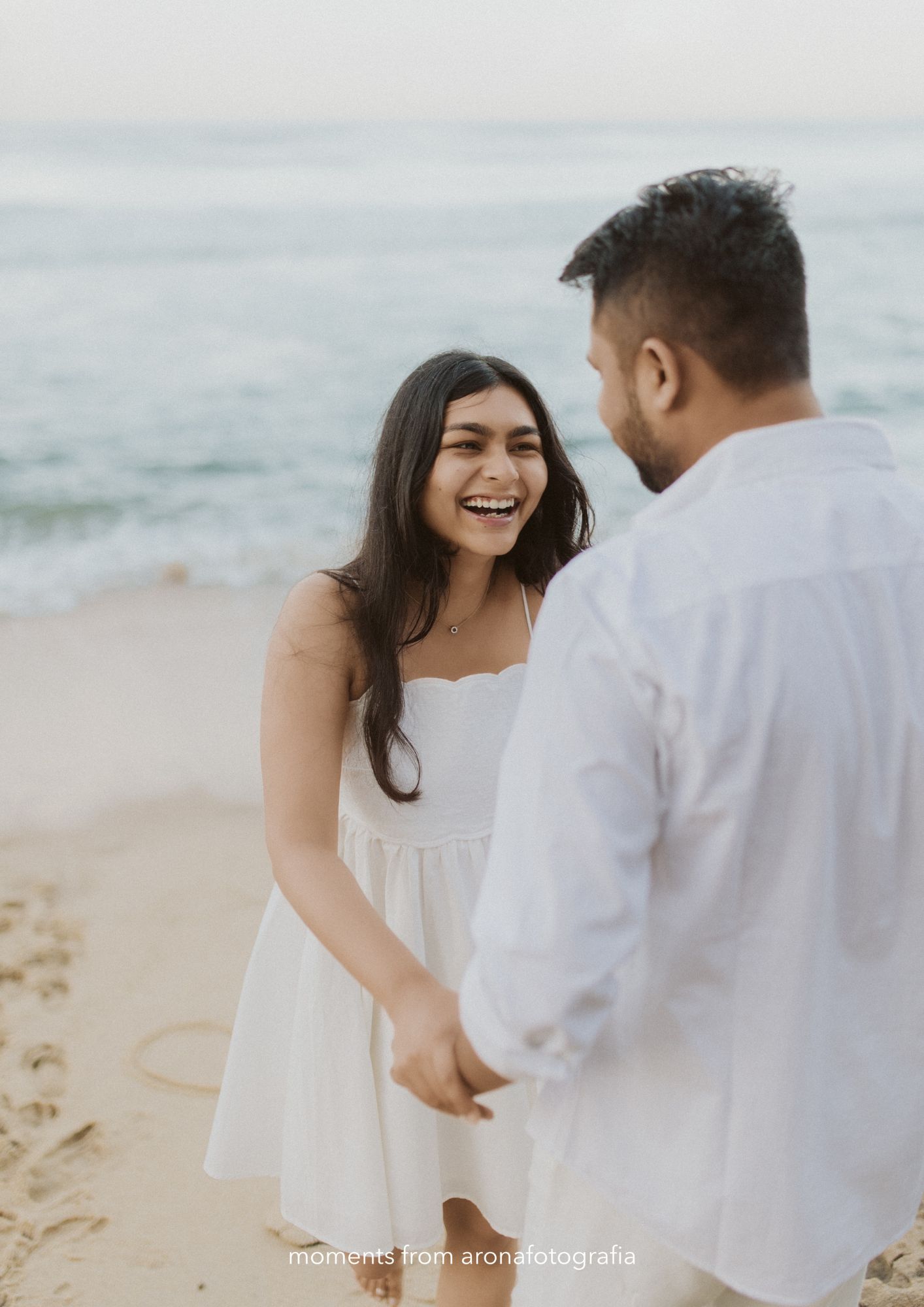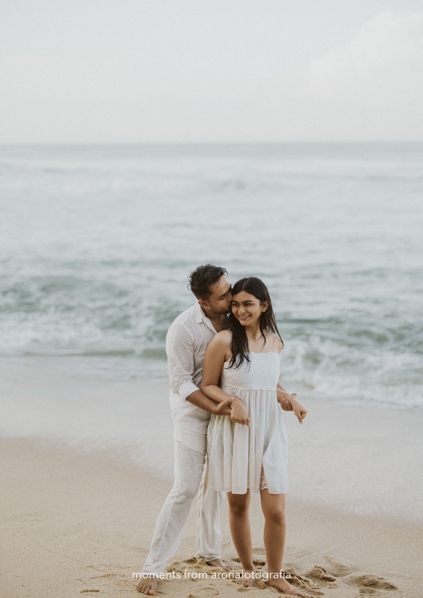Saharsh and Rishika’s pre-wedding shoot beautifully captured the charm of love, laughter, and togetherness at the stunning Varkala Beach in Kerala. Shot during the early morning hours, the soft golden light and calm waves created a dreamy, romantic atmosphere. Dressed in breezy outfits that matched the beach vibe, the couple radiated pure joy and connection as they enjoyed every candid moment by the shore. The combination of natural light, ocean breeze, and their effortless chemistry made every frame come alive. This beach pre-wedding shoot in Kerala perfectly blends fun, freedom, and romance a beautiful visual story captured by Arona Fotografia, one of the best pre-wedding photographers in Kerala.